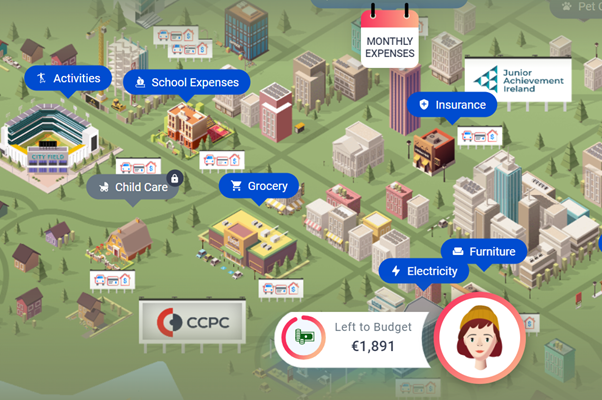 JA Finance Park has been developed with the generous support of the Competition and Consumer Protection Commission (CCPC). Through hands-on activities, this programme explores earning potential, balancing personal budgets, future planning, and insurance. By practicing these skills through an online simulation, students come to realise the importance of financial planning for their overall financial well-being.